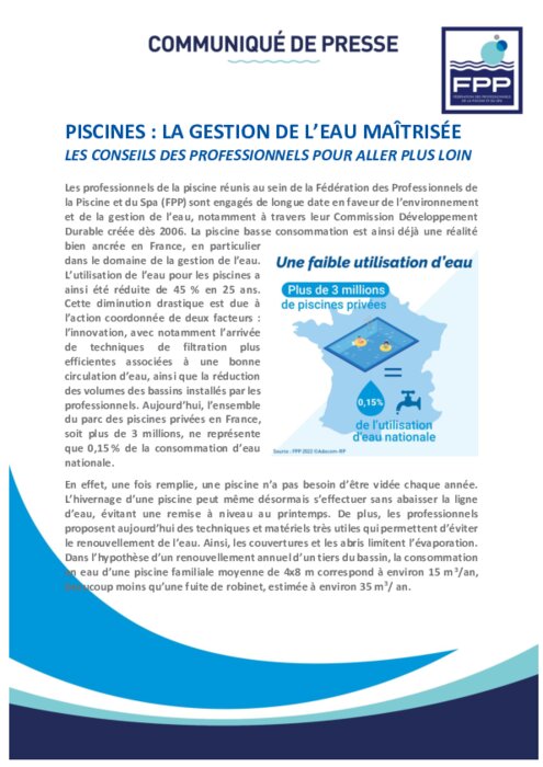 la Piscine et du Spa (FPP) sont engagés de longue date en faveur de l’environnement