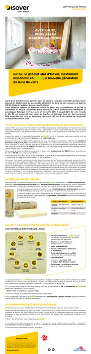 GR 32, le produit star d'Isover, maintenant disponible en LANAÉ