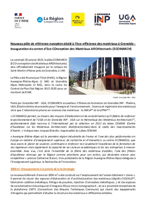 Grenoble INP inaugure le pôle de recherche, innovation et formation 'ECOMARCH'