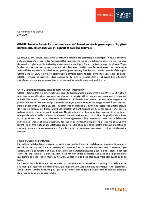 Le nouveau WC lavant Sensia Pro de GROHE redéfinit les standards domestiques. Celui-ci offre une solution complète grâce à des fonctionnalités avancées telles que la télécommande intuitive, les bras de douche réglables et la technologie anti-bactérienne HyperClean. La technologie de chasse Triple Vortex assure un nettoyage puissant et silencieux, tandis que le revêtement en céramique antibactérien repousse la saleté et les germes pour une hygiène durable.