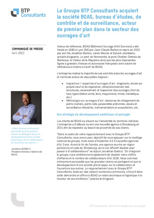 Acteur de référence, BOAS (Bâtiment Ouvrage d’Art Services) a été