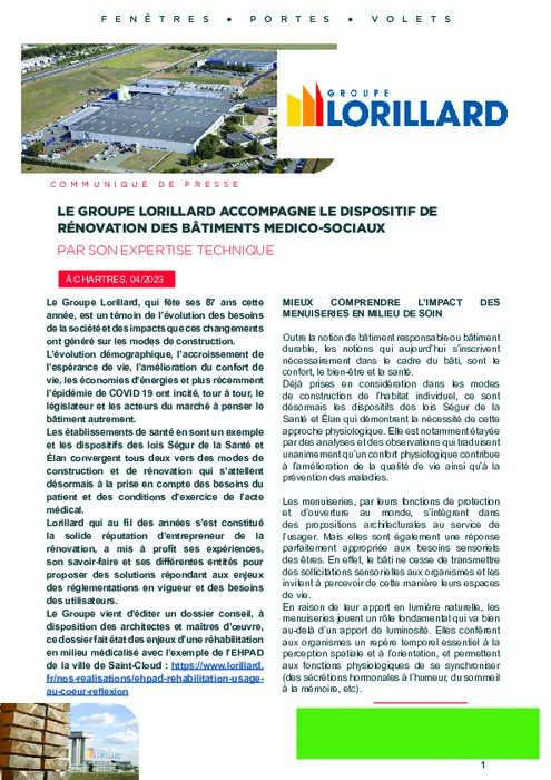Le Groupe vient d’éditer un dossier conseil, à disposition des architectes et maîtres d’œuvre, ce dossier fait état des enjeux d’une réhabilitation en milieu médicalisé avec l’exemple de l’EHPAD de la ville de Saint-Cloud : https://www.lorillard.fr/nos-realisations/ehpad-rehabilitation-usageau-….