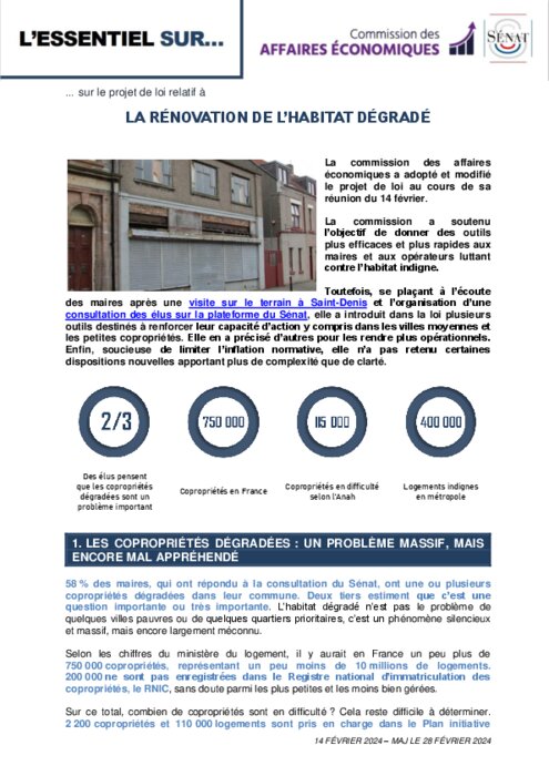 Institutionnels 14 mars 2024 - 15:42 Un compromis a été trouvé jeudi entre sénateurs et députés sur un projet de loi consensuel contre l'"habitat dégradé", avec des mesures pour épauler les copropriétés en difficulté et combattre les marchands de sommeil. PDF (511 Ko) Télécharger