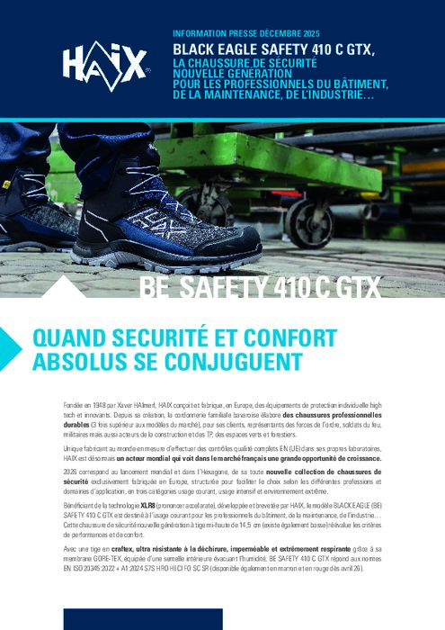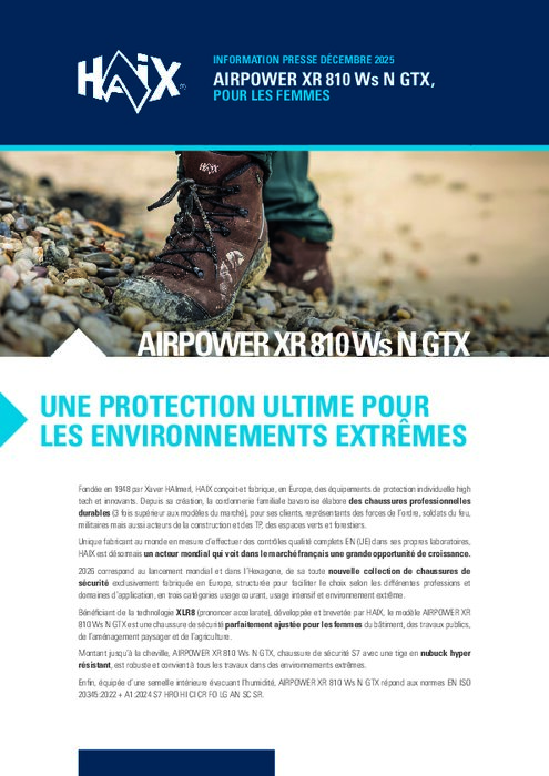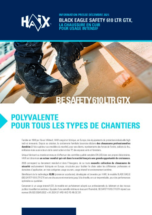 Fondée en 1948 par Xaver HAImerl, HAIX conçoit et fabrique, en Europe, des équipements de protection individuelle high tech et innovants. Depuis sa création, la cordonnerie familiale bavaroise élabore des chaussures professionnelles durables (3 fois supérieur aux modèles du marché), pour ses clients, représentants des forces de l’ordre, soldats du feu, militaires mais aussi acteurs de la construction et des TP, des espaces verts et forestiers.