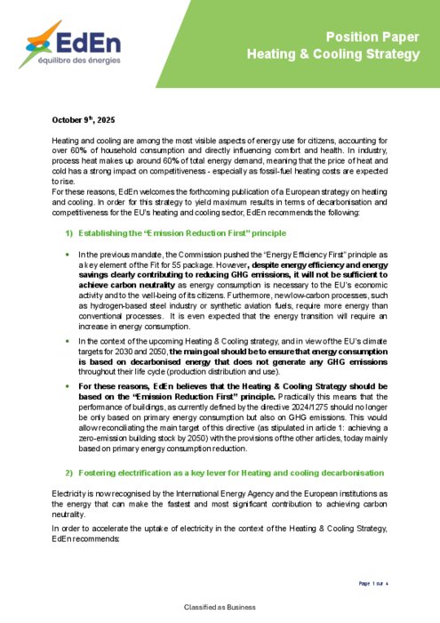 Dans le cadre de la consultation sur la Heating and Cooling Strategy (clôturée le 9 octobre), je vous prie de découvrir en PJ les recommandations d’EdEn > il y interroge la place donnée à l’objectif de réduction des émissions du parc immobilier dans le cadre européen.
