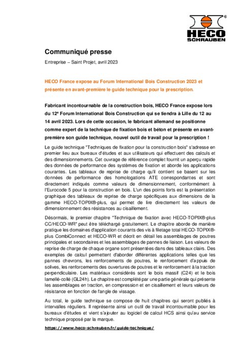 Heco France présentera son guide technique au forum international bois construction