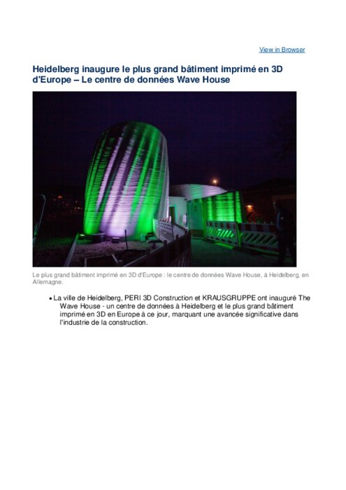 Heidelberg inaugure le plus grand bâtiment imprimé en 3D d'Europe
