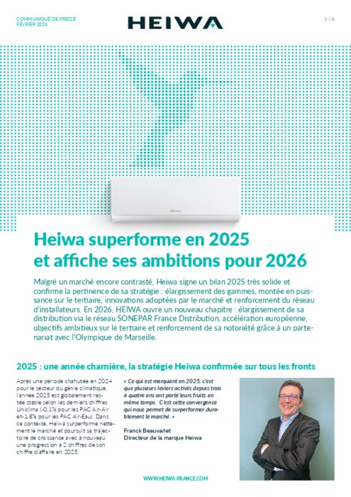 Dans un marché du génie climatique resté globalement stable en 2025, Heiwa, acteur français du marché de la clim et de la pompe à chaleur, a nettement surperformé et enregistré une nouvelle croissance à deux chiffres, confirmant la solidité de sa stratégie.