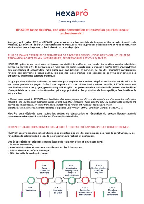 HEXAOM, groupe leader sur les marchés de la construction et de la rénovation de maisons, qui anime et fédère un écosystème de 45 marques et filiales, propose désormais une offre de construction et rénovation aux entreprises, collectivités et porteurs de projets.