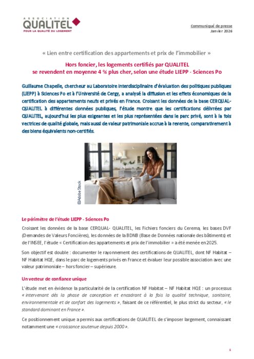Guillaume Chapelle, chercheur au Laboratoire interdisciplinaire d’évaluation des politiques publiques (LIEPP) à Sciences Po et à l’Université de Cergy, a analysé la diffusion et les effets économiques de la certification des appartements neufs et privés en France.