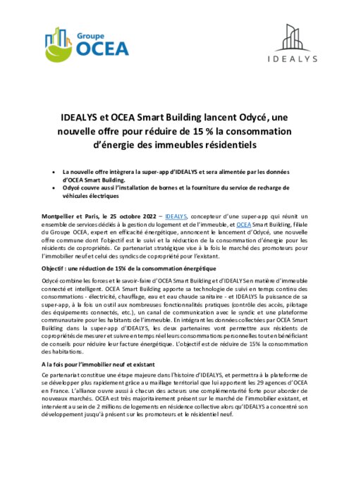 du Groupe OCEA, expert en efficacité énergétique, annoncent le lancement d’Odycé, une nouvelle