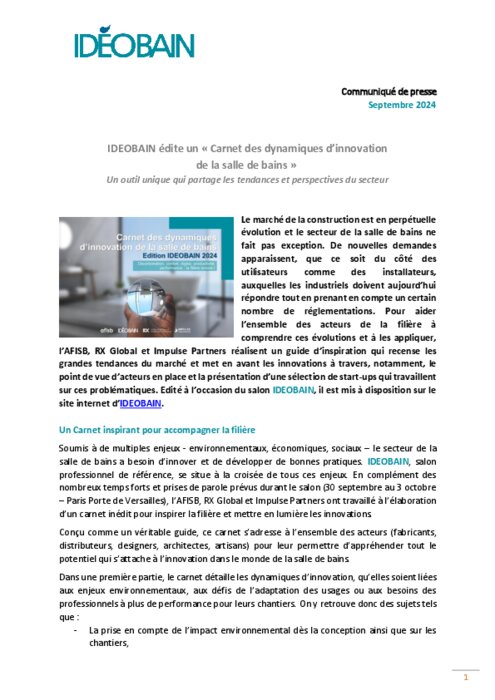 Idéobain édite un « Carnet des dynamiques d’innovation de la salle de bains »