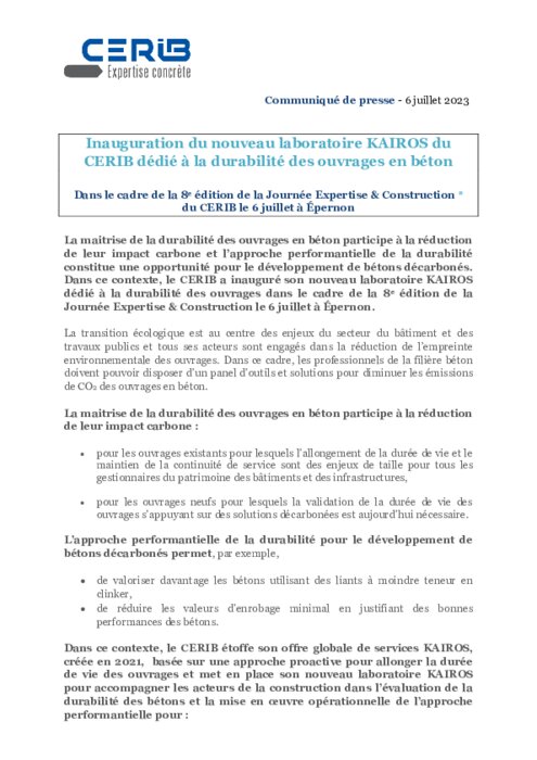 La maitrise de la durabilité des ouvrages en béton participe à la réduction de leur impact carbone et l’approche performantielle de la durabilité constitue une opportunité pour le développement de bétons décarbonés. Dans ce contexte, le CERIB a inauguré son nouveau laboratoire Kairos dédié à la durabilité des ouvrages dans le cadre de la 8e édition de la Journée Expertise & Construction le 6 juillet à Épernon.
