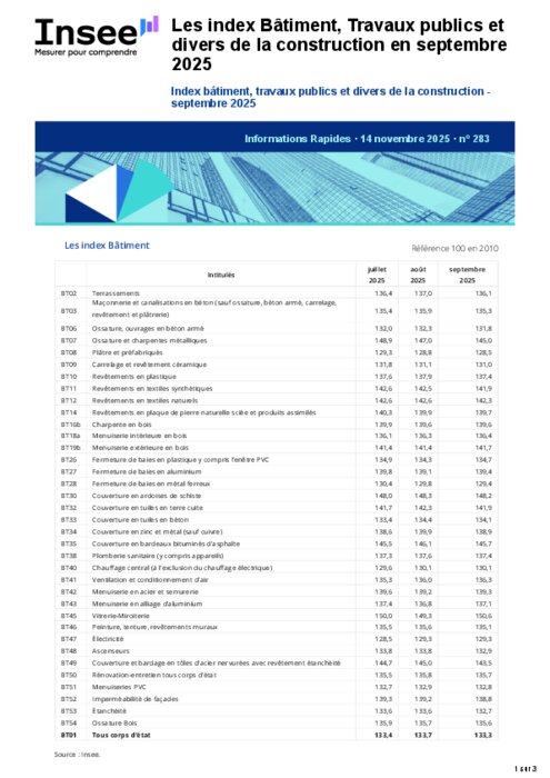 construction sont des indices de coût de production des différentes activités du secteur de la construction, principalement utilisés à des fins d’indexation de contrats.