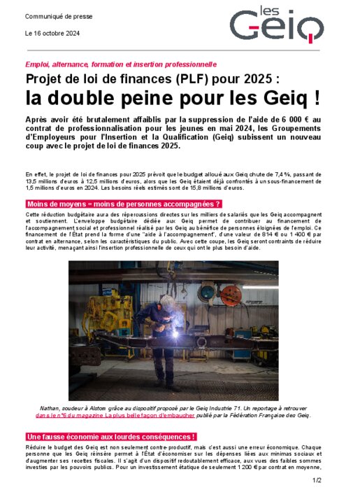 Insertion : la double peine pour les Geiq dans le PLF 2025