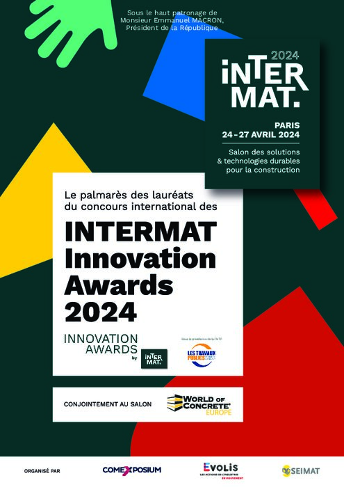 Mercredi 24 avril 2024 avait lieu la soirée des INTERMAT Innovation Awards. Pour l'occasion, un jury international de 18 experts (9 jurés français et 9 jurés internationaux) a sélectionné 14 lauréats (Gold, Silver, Bronze Awards) dans les 4 catégories proposées : Terrassement, Démolition et Transport ; Routes, Industrie des matériaux et Fondations ; Bâtiment, Génie civil et filière béton ; Décarbonation & Transition énergétique ; Nouvelles technologies.