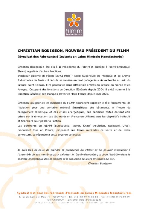 Christian Bouigeon a été élu à la Présidence du FILMM et succède à Pierre-Emmanuel Thiard, appelé à d’autres fonctions. Ingénieur diplômé de l’école ESPCI Paris – Ecole Supérieure de Physique et de Chimie