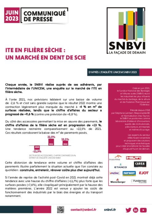 À l’orée 2021, les prévisions tablaient sur une baisse de volume de -2,6 % et c’est sans grande surprise que le résultat 2022 montre une contraction légèrement plus marquée du marché à -4 % en m2 de surfaces réalisées, tandis que le chiffre d’affaires du secteur a progressé de +9,6 % (contre une prévision de +8,8 %).