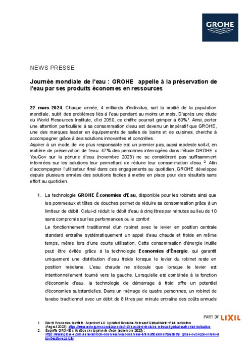 d’accompagner l’utilisateur final dans ces engagements au quotidien, GROHE développe depuis plusieurs années des solutions faciles à mettre en place pour des résultats sans effort au quotidien.
