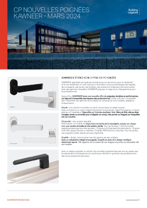 Kawneer présente ses nouvelles poignées design et fonctionnelles