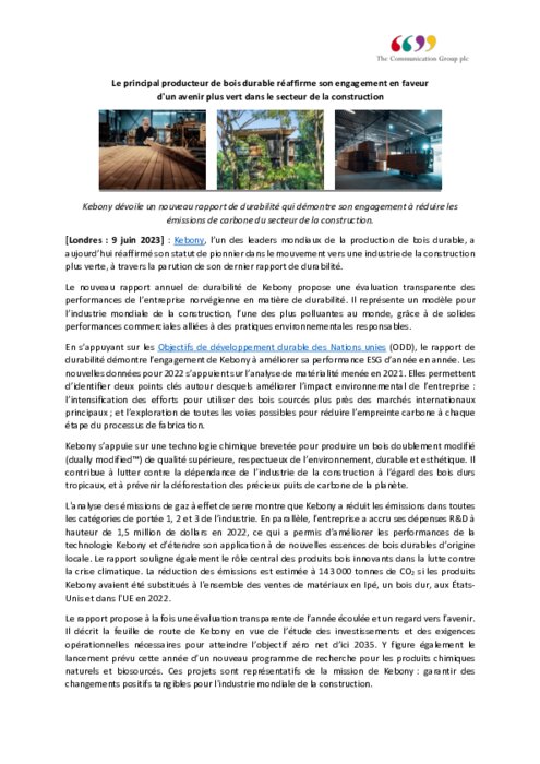 Kebony réaffirme son engagement en faveur d'un avenir plus vert