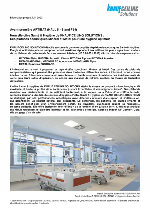Industriels 30 juin 2023 - 08:34 Élargie et optimisée, elle se compose de huit solutions répondant aux critères les plus exigeants en matière de bactéries et de pollution de l’environnement intérieur (NF S 90-351:2013) afin de créer des espaces sains. PDF (356 Ko) Télécharger