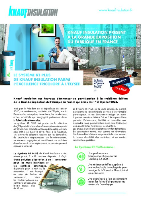 Knauf Insulation est heureux d’annoncer sa participation à la troisième édition de la Grande Exposition du Fabriqué en France qui a lieu les 1er et 2 juillet 2023.