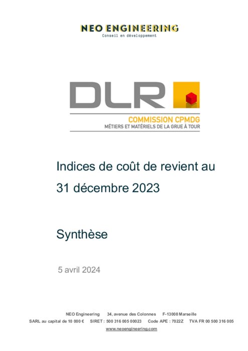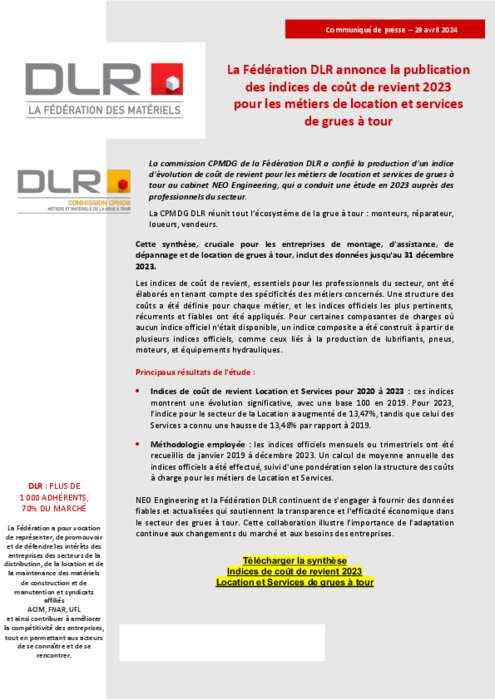 La commission CPMDG de la Fédération DLR a confié la production d’un indice d’évolution de coût de revient pour les métiers de location et services de grues à tour au cabinet NEO Engineering, qui a conduit une étude en 2023 auprès des