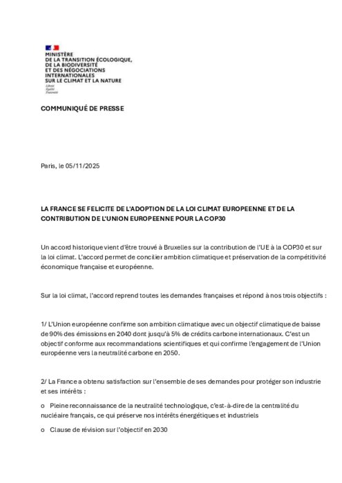 L’Union européenne confirme son ambition climatique avec un objectif climatique de baisse de 90% des émissions en 2040 dont jusqu’à 5% de crédits carbone internationaux. C’est un objectif conforme aux recommandations scientifiques et qui confirme l’engagement de l’Union européenne vers la neutralité carbone en 2050.