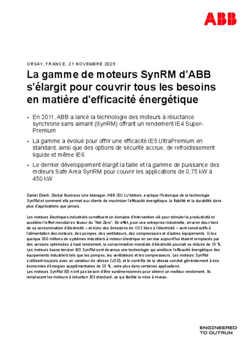 La gamme de moteurs SynRM d’ABB s'élargit