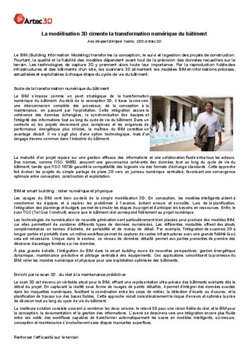 Le BIM (Building Information Modeling) transforme la conception, le suivi et la gestion des projets de construction. Pourtant, la qualité et la fiabilité des modèles dépendent avant tout de la précision des données recueillies sur le terrain. Les technologies de capture 3D y prennent alors toute leur importance. Par la reproduction fidèle des infrastructures et des bâtiments d’un site, les scanners 3D alimentent les modèles BIM en informations précises, actualisées et exploitables à chaque étape du cycle de vie du bâtiment.