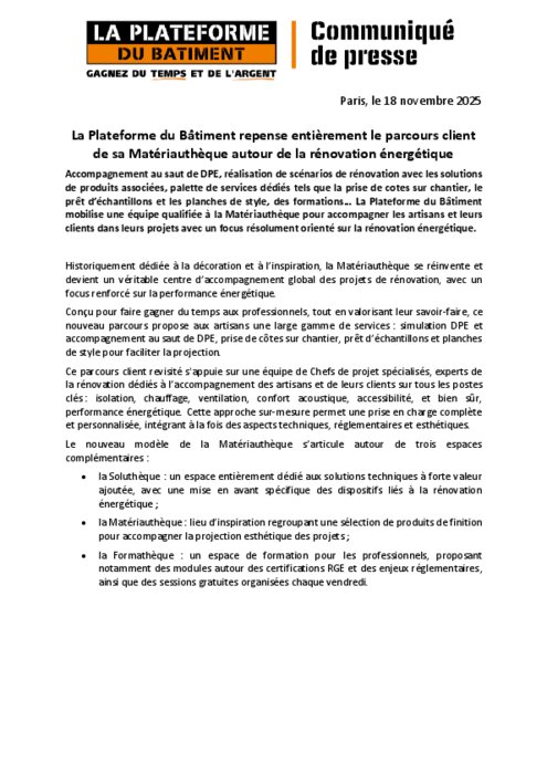 La Plateforme du Bâtiment repense entièrement le parcours client de sa Matériauthèque autour de la rénovation énergétique