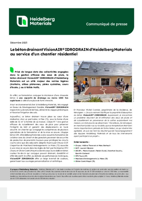 Le béton drainant d'Hedelberg Materials au service d’un chantier résidentiel