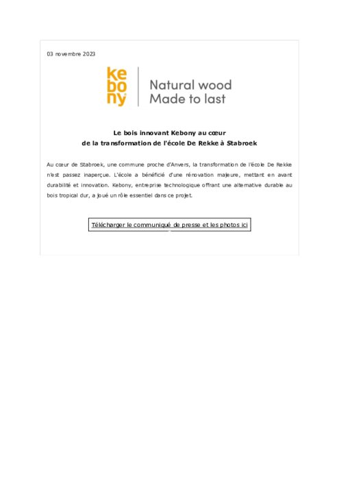 Au cœur de Stabroek, une commune proche d'Anvers, la transformation de l’école De Rekke n’est passez inaperçue. L'école a bénéficié d'une rénovation majeure, mettant en avant durabilité et innovation. Kebony, entreprise technologique offrant une alternative durable au bois tropical dur, a joué un rôle essentiel dans ce projet.