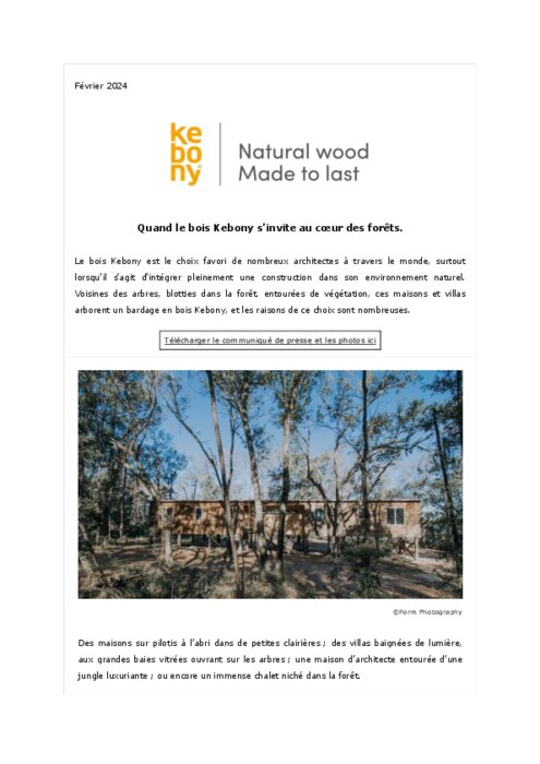 Le bois Kebony est le choix favori de nombreux architectes à travers le monde, surtout lorsqu’il s’agit d’intégrer pleinement une construction dans son environnement naturel. Voisines des arbres, blotties dans la forêt, entourées de végétation, ces maisons et villas arborent un bardage en bois Kebony, et les raisons de ce choix sont nombreuses.