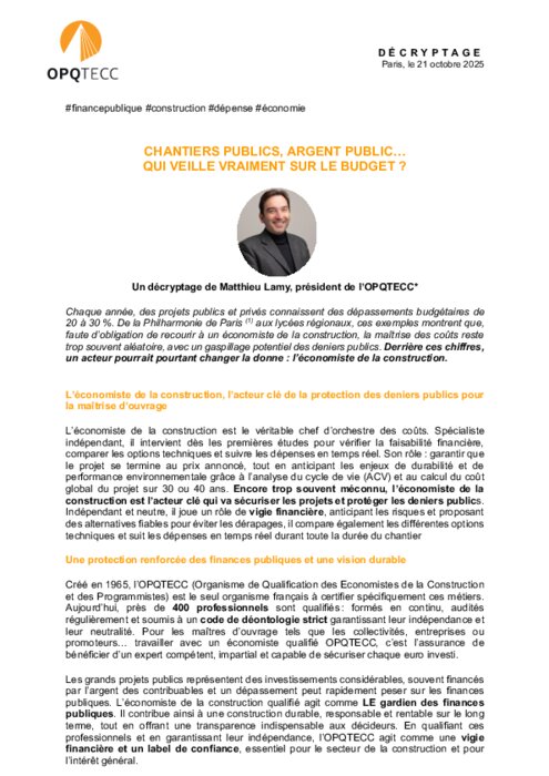 Chaque année, des projets publics et privés connaissent des dépassements budgétaires de 20 à 30 %. De la Philharmonie de Paris aux lycées régionaux, ces exemples montrent que, faute d’obligation de recourir à un économiste de la construction, la maîtrise des coûts reste trop souvent aléatoire, avec un gaspillage potentiel des deniers publics. Derrière ces chiffres, un acteur pourrait pourtant changer la donne : l’économiste de la construction.