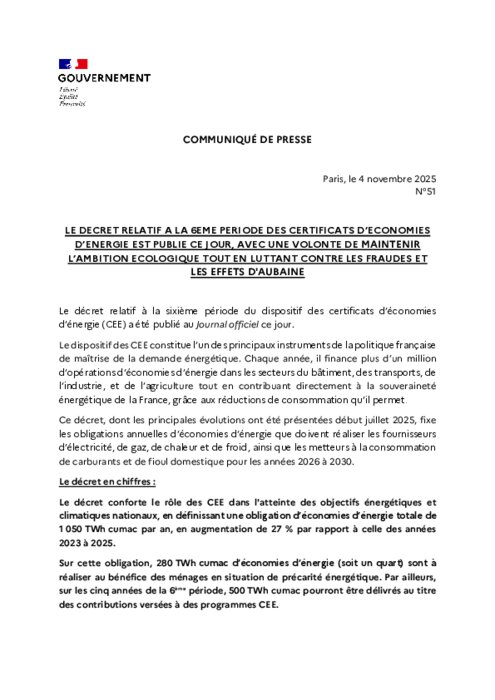 Le décret relatif à la 6e période des CEE est publié !