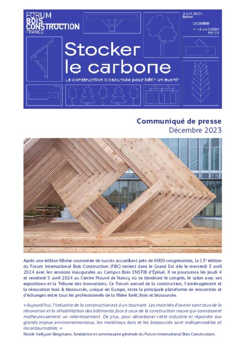 Après « la neutralité carbone » en 2022 et « l’Europe biosourcée » en 2023, la 13e édition du Forum International Bois Construction s’articule autour du thème « Stocker le carbone ».
