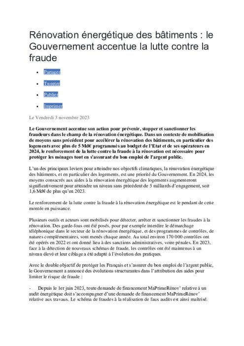 Dans un contexte de mobilisation de moyens sans précédent pour accélérer la rénovation des bâtiments, en particulier des logements avec plus de 5 Md€ programmés au budget de l’Etat et de ses opérateurs en 2024, le renforcement de la lutte contre la fraude à la rénovation est nécessaire pour protéger les ménages tout en s’assurant du bon emploi de l’argent public.
