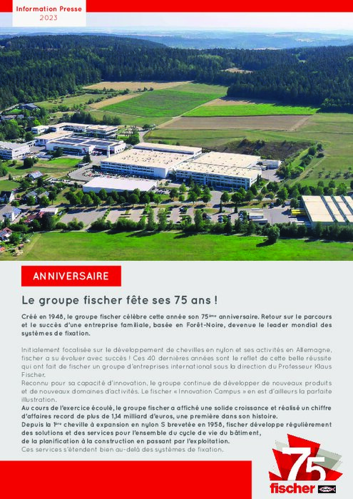 Créé en 1948 le groupe fischer célèbre cette année son 75ème anniversaire. Retour sur le parcours et le succès d’une entreprise familiale basée en Forêt-Noire devenue le leader mondial des systèmes de fixation.