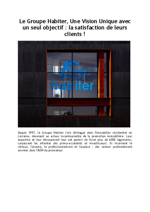 Depuis 1997, le groupe Habiter s'est distingué dans l'immobilier résidentiel en Lorraine, devenant un acteur incontournable de la promotion immobilière. Leur expertise et leur dévouement leur ont permis de livrer plus de 6 000 logements, surpassant les attentes des primo-accédants et investisseurs. Ils incarnent le sérieux, l'écoute, le professionnalisme et l'audace – des valeurs profondément ancrées dans l'ADN du promoteur.