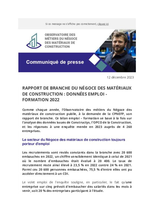 Les recrutements sont restés constants dans la branche avec 20 600 embauches en 2022, un chiffre sensiblement identique à celui de 2021 où le nombre d'embauches était évalué à 20 400. Le taux de recrutement reste ainsi élevé à 23,5 % en 2022 contre 24 % en 2021. Parmi ces 20 600 personnes embauchées, 75,5 % d’entre elles ont pu accéder directement à un CDI.