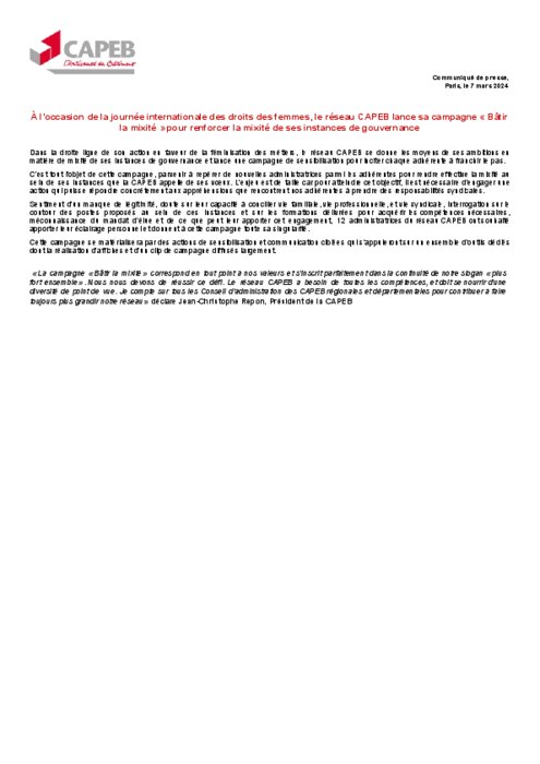 Dans la droite ligne de son action en faveur de la féminisation des métiers, le réseau CAPEB se donne les moyens de ses ambitions en matière de mixité de ses instances de gouvernance et lance une campagne de sensibilisation pour inciter chaque adhérente à franchir le pas. C’est tout l’objet de cette campagne, parvenir à repérer de nouvelles administratrices parmi les adhérentes pour rendre effective la mixité au sein de ses instances que la CAPEB appelle de ses vœux.