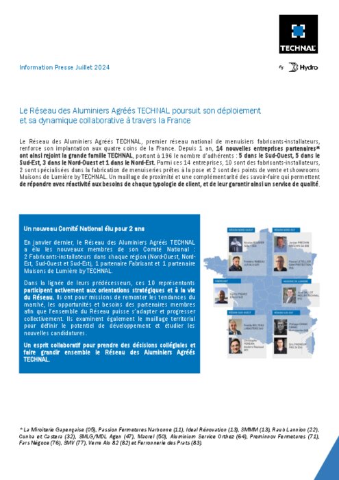 Le Réseau des Aluminiers Agréés TECHNAL, premier réseau national de menuisiers fabricants-installateurs, renforce son implantation aux quatre coins de la France. Depuis 1 an, 14 nouvelles entreprises partenaires ont ainsi rejoint la grande famille TECHNAL, portant à 196 le nombre d’adhérents : 5 dans le Sud-Ouest, 5 dans le Sud-Est, 3 dans le Nord-Ouest et 1 dans le Nord-Est. Parmi ces 14 entreprises, 10 sont des fabricants-installateurs, 2 sont spécialisées dans la fabrication de menuiseries prêtes à la pose et 2 sont des points de vente et showrooms Maisons de Lumière by TECHNAL.