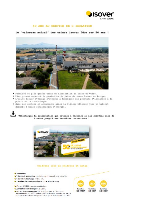 Industriels 16 avril 2024 - 12:20 L’usine Isover d’Orange s’attache à fabriquer des produits d’isolation à la pointe de la technologie dans son secteur et accompagne ainsi la filière bâtiment vers un habitat durable à basse consommation d’énergie. PDF (1 Mo) Télécharger
