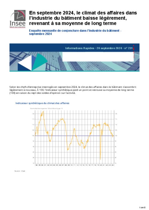Selon les chefs d’entreprise interrogés en septembre 2024, le climat des affaires dans le bâtiment s’assombrit