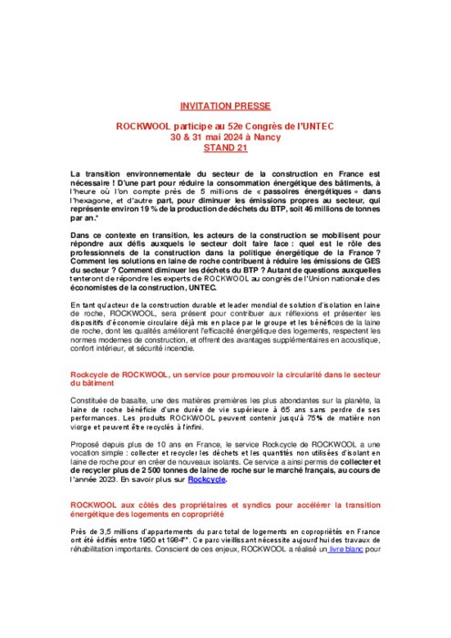 Quel est le rôle des professionnels de la construction dans la politique énergétique de la France ? Comment les solutions en laine de roche contribuent à réduire les émissions de GES du secteur ? Comment diminuer les déchets du BTP ? Autant de questions auxquelles tenteront de répondre les experts de ROCKWOOL au congrès de l’Union nationale des économistes de la construction, UNTEC.