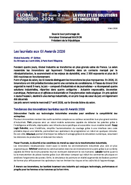 Pendant quatre jours, Global Industrie se transforme en plus grande usine de France. Le salon rassemble les innovations qui façonnent l’industrie dans un contexte marqué par la réindustrialisation, la souveraineté et les enjeux de durabilité, avec 2 300 exposants et plus de 3 000 machines en fonctionnement.