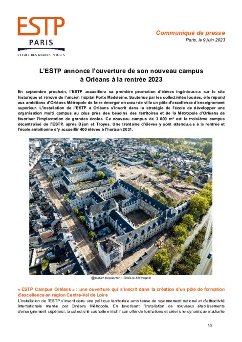 L’installation de l’ESTP à Orléans s’inscrit dans la stratégie de l’école de développer une organisation multi campus au plus près des besoins des territoires et de la Métropole d’Orléans de favoriser l’implantation de grandes écoles. Ce nouveau campus de 3 000 m2 est le troisième campus décentralisé de l’ESTP, après Dijon et Troyes.