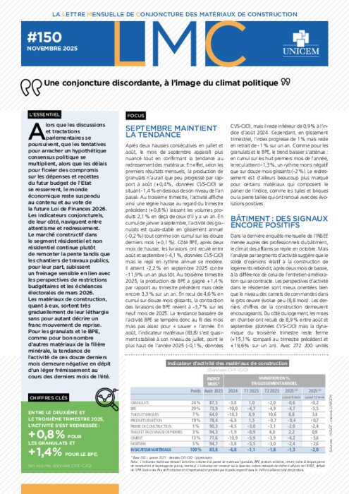 Lettre Mensuelle de Conjoncture de l'UNICEM - Novembre 2025